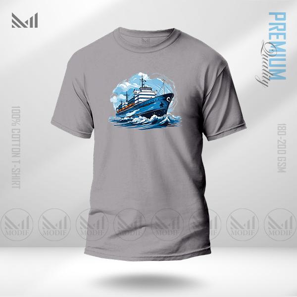Retro Ship Graphic T-Shirt – Vintage Nautical Artwork in Premium Cotton | Unisex Round Neck | Short Sleeve